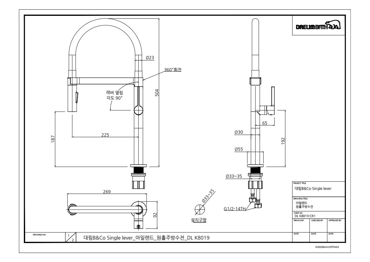 - 아일랜드 주방 전용 수전